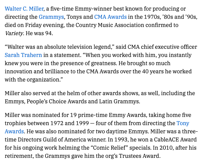 It slipped under my radar over this past weekend that Walter C. Miller, Doug’s long time TV director, passed away at the age of 94.