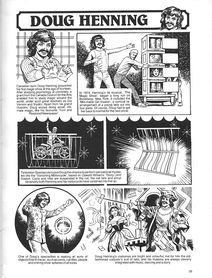 The item below comes from the 1981 book “Ali Bongo’s Book of Magic.” In it, Ali Bongo gives us a brief history of Doug’s life up to that point through some eye catching cartoon art. It’s a neat little piece released at the peak of Doug’s fame!
